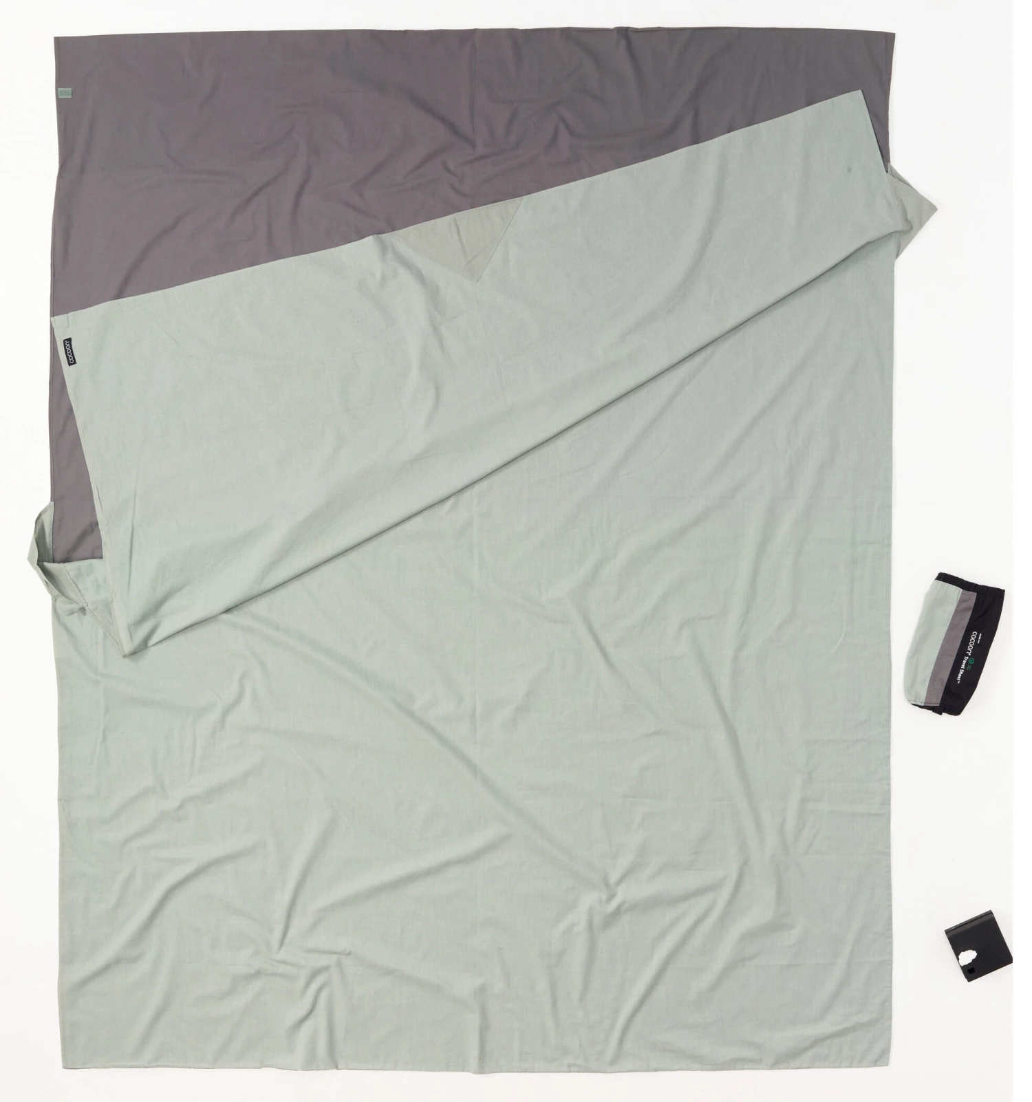 Cocoon TravelSheet Drap pour sac de couchage Coton double taille, gris(elephant grey/cactus blue)