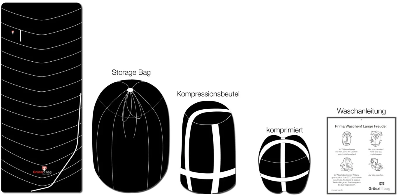 - Service de recharge : En cas de besoin, le sac de couchage peut être rechargé en duvet chez un partenaire de service Grüezi bag. Une longue durée de vie est ainsi garantie