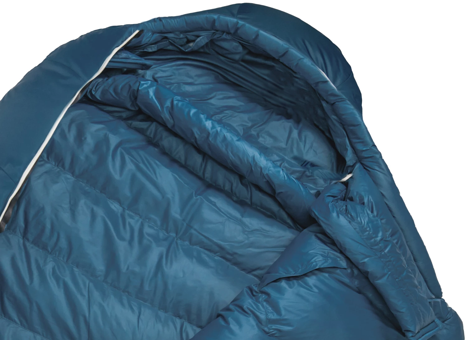 DownWool est un rembourrage innovant haut de gamme composé de 70 % de duvet et de 30 % de laine. Le duvet offre une très haute performance d’isolation avec un faible poids propre. Cependant, le duvet n’isole que tant qu’il est sec. Avec l’augmentation de l’humidité, l’effet isolant du duvet est considérablement réduit. La laine a la capacité d’isoler et d’absorber l’humidité. Cela permet de garder le duvet au sec plus longtemps et donc de conserver sa capacité d’isolation très élevée. Dans DownWool, Grüezi-bag a maintenant mélangé les deux matériaux dans une proportion parfaite. Un procédé techniquement complexe a été mis au point pour que le duvet et la laine se lient durablement. Le grand avantage de DownWool est qu’il n’est pas sensible à l’humidité par rapport au duvet pur et qu’il isole donc plus longtemps à humidité élevée. Comparé aux rembourrages en pure laine, DownWool a l’avantage d’être beaucoup plus léger.