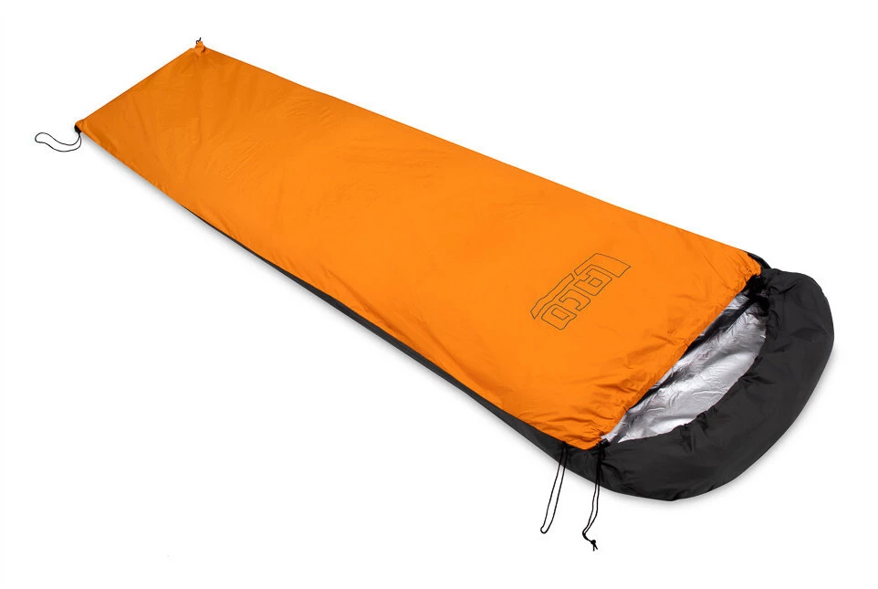 Il est fabriqué en nylon Rip-Stop recouvert d’aluminium. Le revêtement en aluminium assure la réflexion de la chaleur, le matériau rip-stop le rend robuste. Le sac de bivouac est étanche.