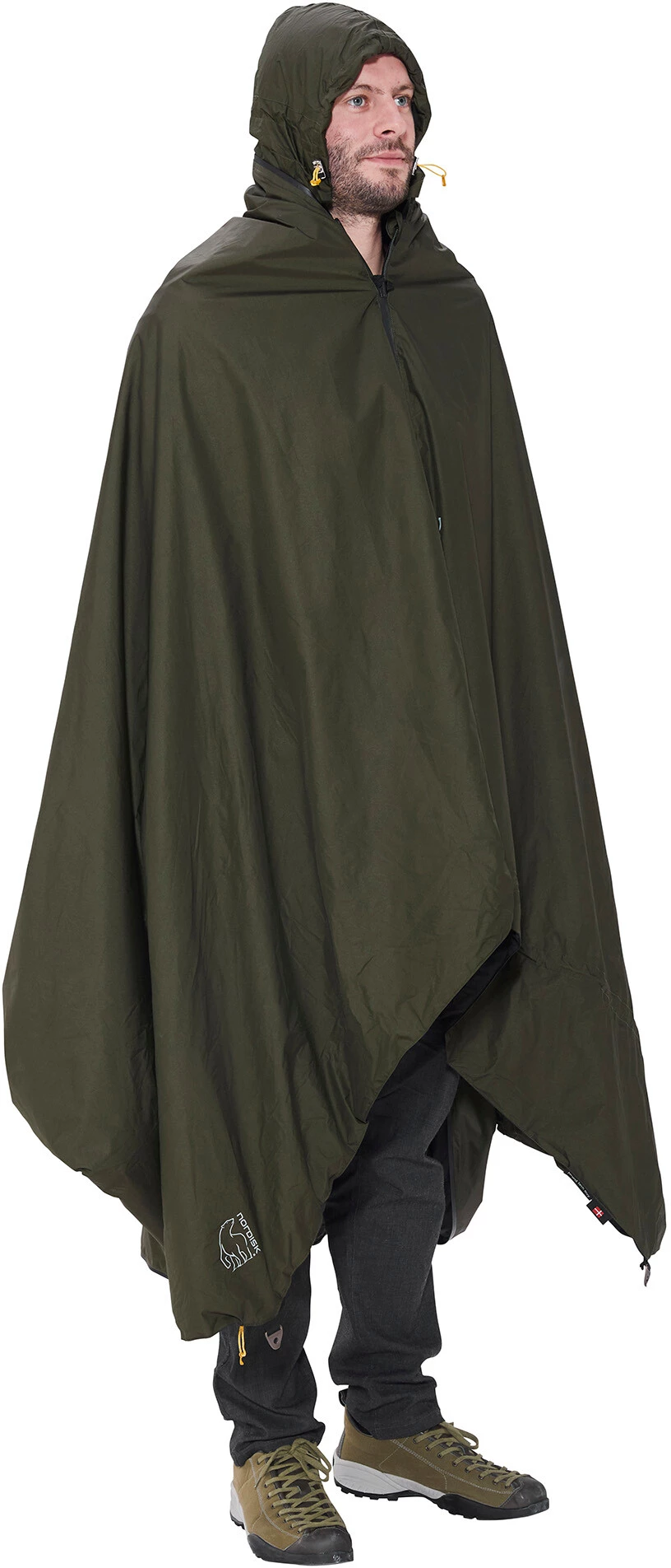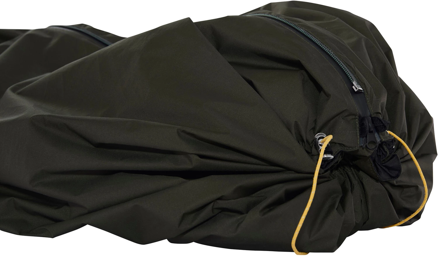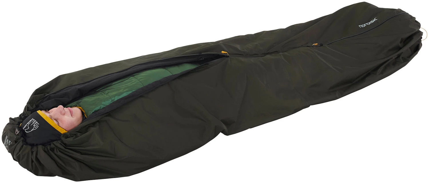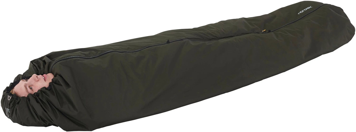 En plus du sac de couchage proprement dit, le Jorund Tech Bivy augmente sa température de confort. Doté de 10 points d’attache, il peut également servir de bâche de protection ou de base pour votre camp. Lorsqu’il est utilisé comme poncho, il offre une protection contre le vent et les intempéries car il est à la fois imperméable et respirant. En outre, il possède un capot caché. La fermeture éclair sert également de fermeture éclair frontale.