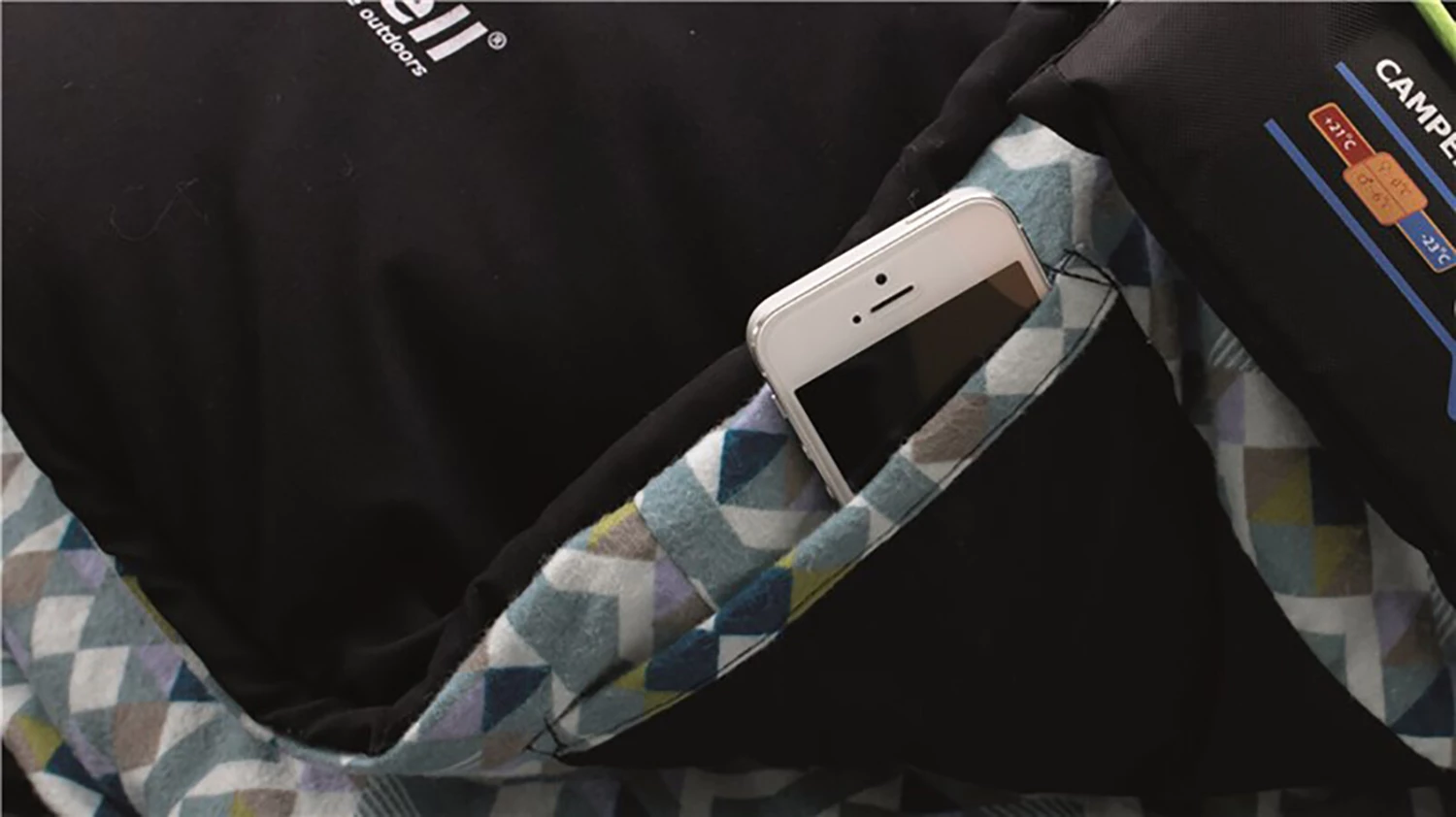 Boucles de fixation dans le sac de couchage auquel la couverture intérieure est fixée par des boutons-pression.