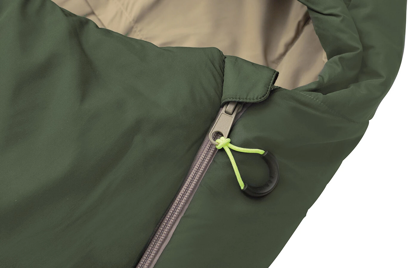- Le sac de couchage peut être relié à un autre par la fermeture éclair gauche avec la fermeture éclair droite correspondante, pour créer un double sac de couchage