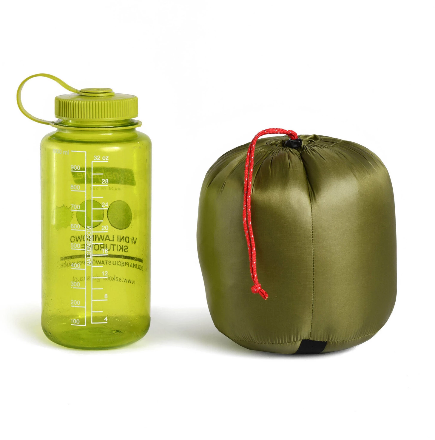 L’édredon peut s’ouvrir complètement pour devenir une couverture ou servir de hamac sous la couette. La fermeture de la boîte à chaussures, qui empêche les courants d’air, vous protège du froid. Le modèle est équipé de boucles de fixation pour le matelas de couchage.