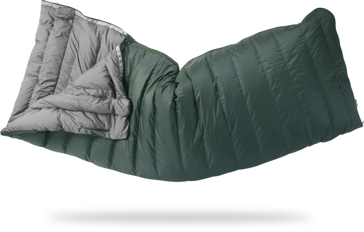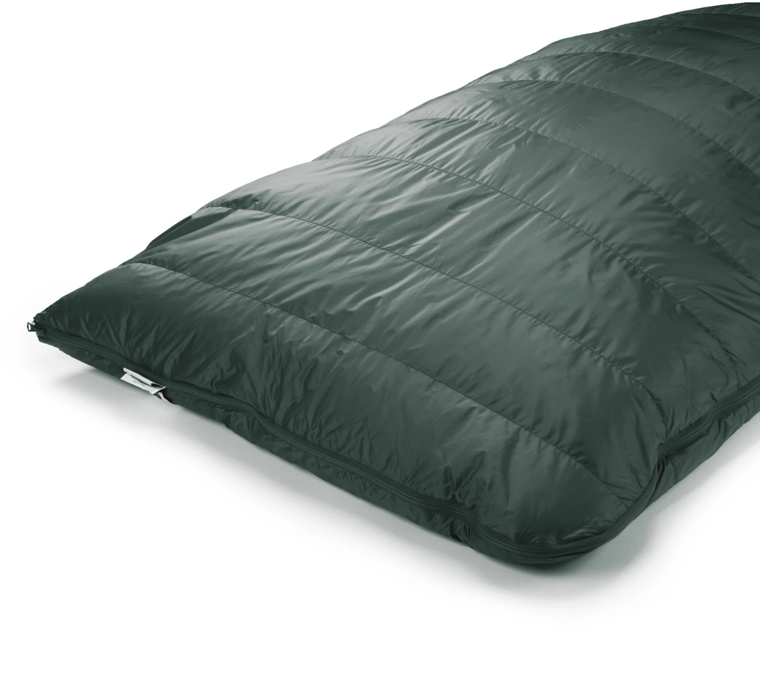 Un sac de couchage rectangulaire en duvet avec une enveloppe extérieure en Pertex Quantum, souple et empaquetable, qui se transforme en couette plate. Rempli à la main dans le Derbyshire avec du duvet de canard européen éthique certifié 650FP RDS, fini avec un revêtement hydrophobe Nikwax sans fluorocarbone.