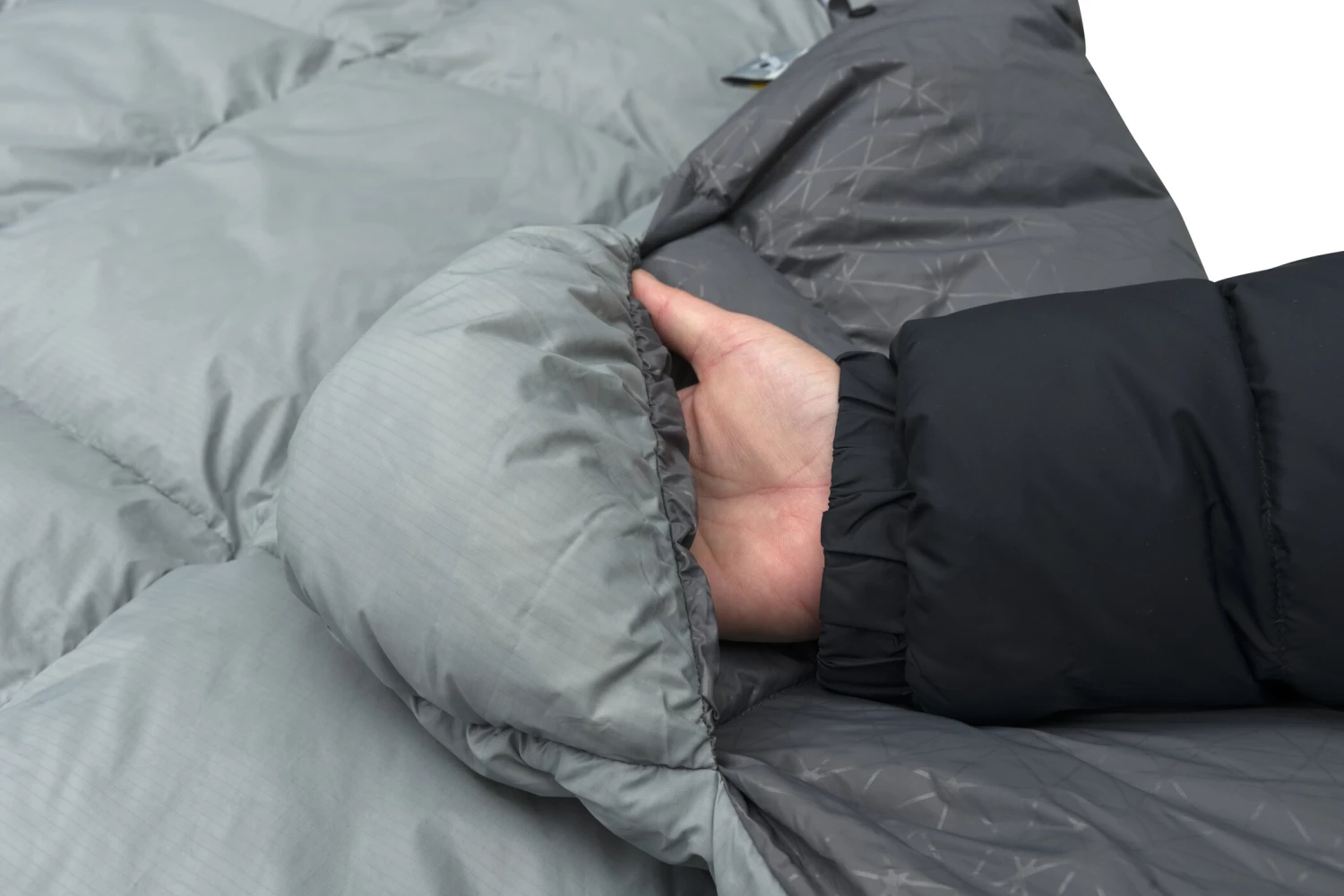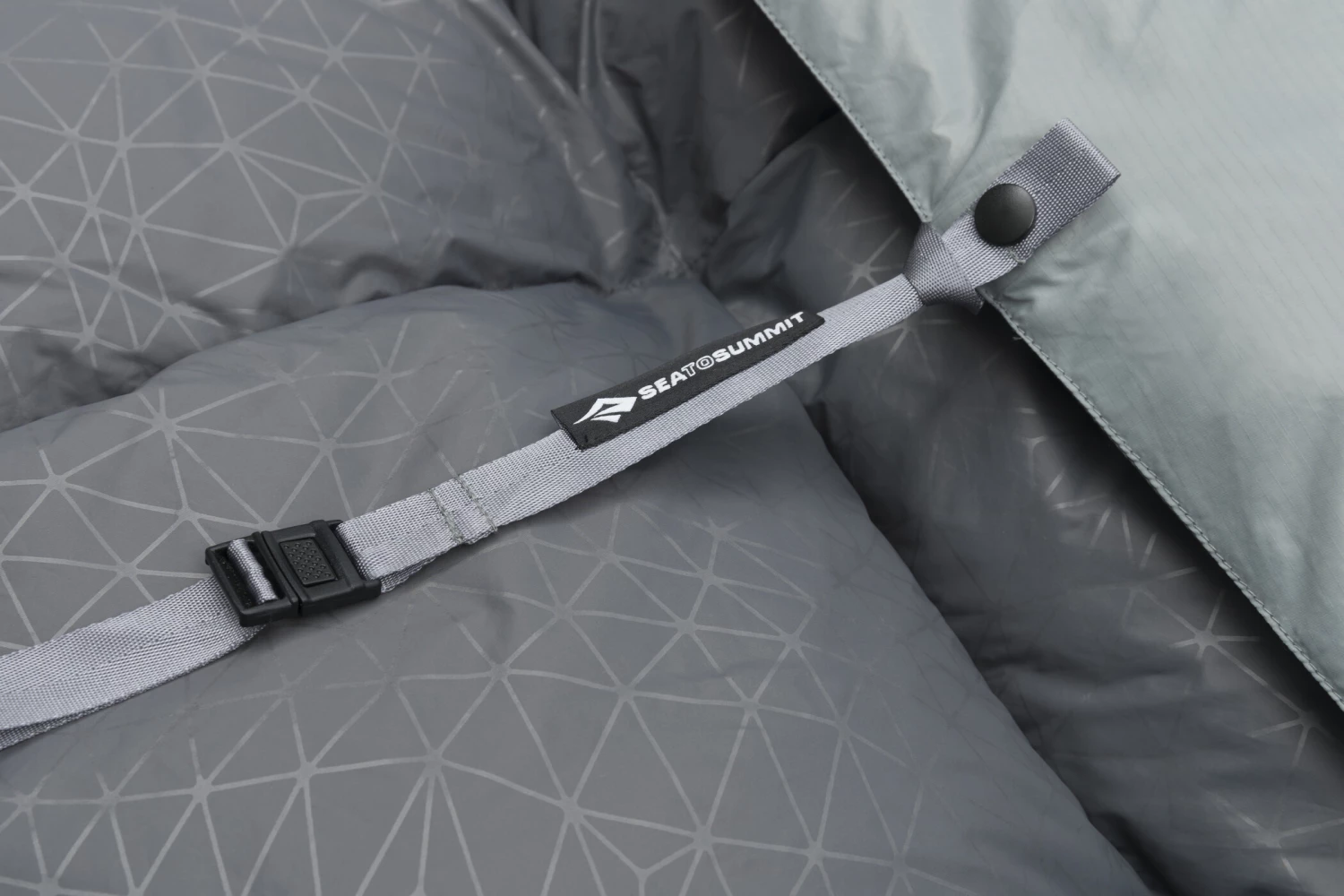 - Le système QuiltLock permet de connecter l’édredon Cinder à n’importe quel sac de couchage Sea to Summit