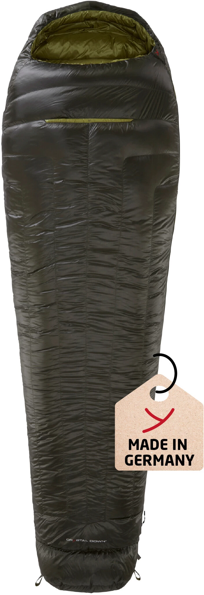 Le sac de couchage Balance possède une construction unique à chambre frontale. Les chambres verticales assurent une distribution rapide et cohérente de la chaleur du haut du corps vers les pieds, en équilibrant intelligemment les différentes plages de température du corps. La balance est remplie de duvet Crystal Down Dry hydrofuge et à séchage rapide afin de ne pas absorber l’humidité. Il assure ainsi un confort de sommeil agréable et permanent.